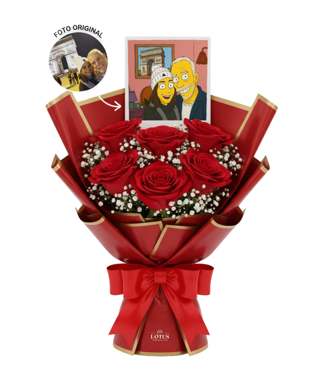 Com o buquê e a polaroid personalizada no estilo Simpsons, esse momento virá à memória para sempre, porque amar também é brincar, relembrar e dizer “eu te amo” de um jeito só de vocês.