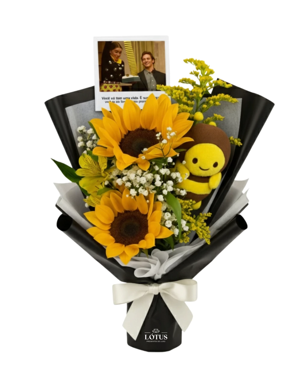 Um presente radiante que une a força e a luz dos girassóis com a doçura de uma abelhinha fofa.