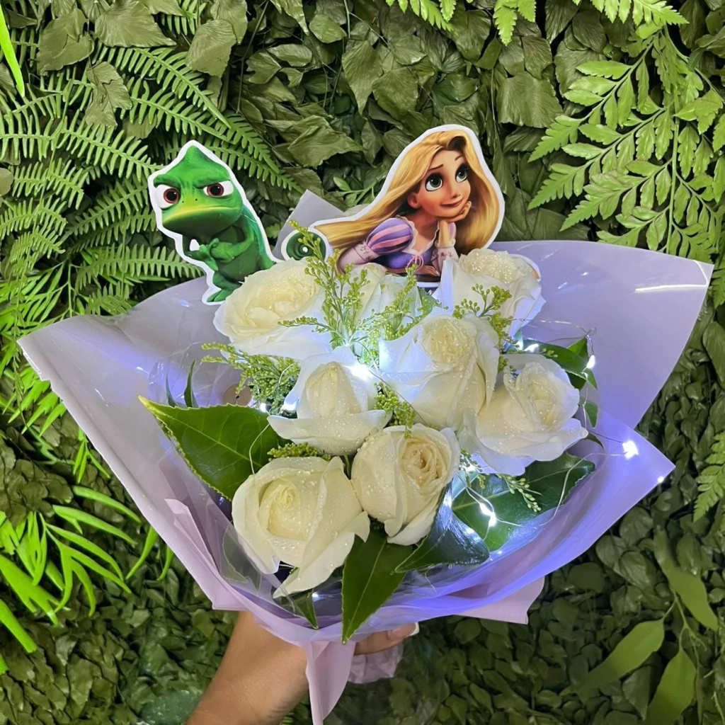 Olha, se você pensou que a Rapunzel só ficou famosa pelo cabelo dourado, está muito enganado. O verdadeiro segredo da magia dela? Foi um príncipe... bem, quase um príncipe. Mas, se você não está pronto para escalar torres e lutar contra vilões (quem está?), esse buquê vai te dar uma ajudinha no romance – e sem necessidade de qualquer feitiço!